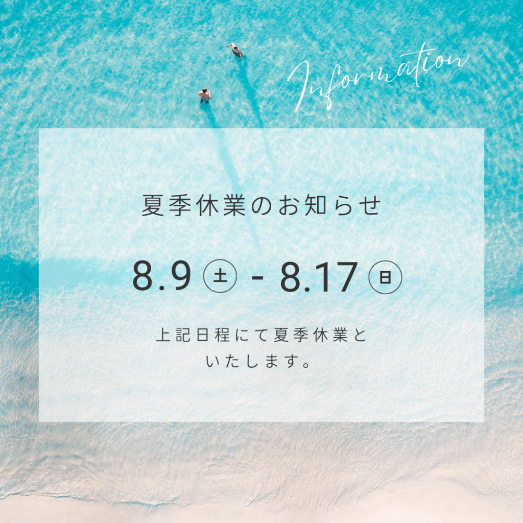 下記日程にて夏期休業とたしますので